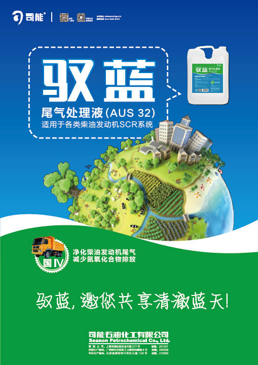 驭蓝尾气处理液是柴油车SCR系统氮氧化物(NOx)减排专用还原剂,适用于所有国Ⅳ、国Ⅴ排放柴油发动机SCR系统。SCR技术通过添加驭蓝尾气处理液,可达到达到既节能、又减排、并有效保护SCR系统的目的。本品适用于所有符合国Ⅳ(欧Ⅳ)及以上排放标准的各种商业用车、客车、特种车、工程机械及船舶中的柴油发动机SCR(选择性催化还原装置)系统。